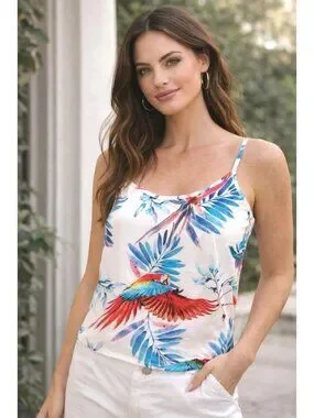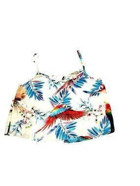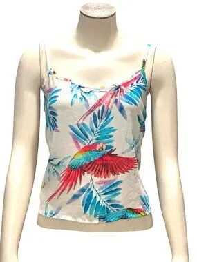 Forever 21 Size Small White Tropical Parrot Print Cami Tank Resortcore Glam Chic