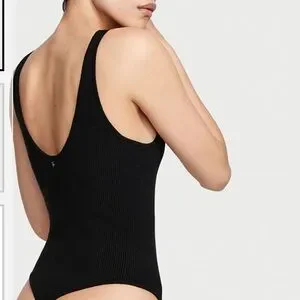 • NWT New with tags black ribbed bodysuit with small gold VS logo on back