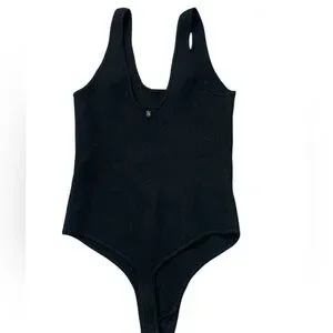 • This sleek bodysuit is cut from a stretchy ribbed knit that sculpts and hugs your curves. Destined to become your new favorite layer. Lightly lined Wireless Scoop neck with back high-cut leg thong back. Hand wash.