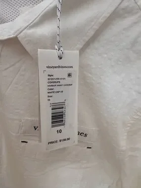 NWT Vineyard Vines Harbor Shirt Cover-Up | White Cap | Size 10