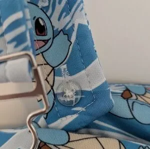 This Blue Hot Topic Pokemon Size Small (Juniors) Squirtle Emo Scene Suspender Skirt is a stylish and fun addition to any young woman's wardrobe. The skirt features a zip closure, removable straps, and a mini length, perfect for a casual or party/cocktail occasion. Made from a comfortable blend of polyester and spandex, this lightweight skirt is machine washable for easy care. The Pokemon pattern with a Squirtle character and various theme accents like festival, TV, anime, and nerd make it a trendy and colorful choice for the summer or spring seasons.