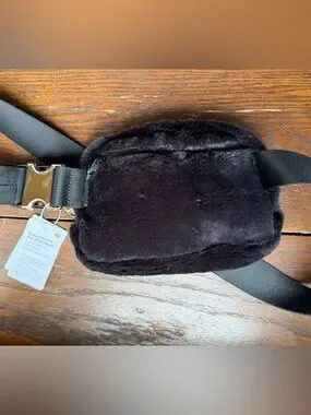 lululemon athletica Black Faux-Fur Belt Bag with Gold Buckle