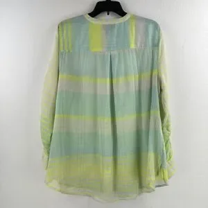 Lane Bryant Pastel Shirt 14/16 Yellow Teal Roll Tab Sleeve Sheer Spring Light