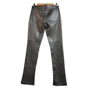 Ralph Lauren Womens Silver Metallic Lamb Leather Slim Straight Pants Size 4