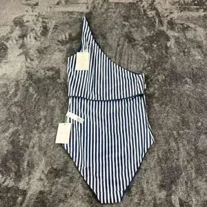Striped One-Shoulder Navy & White Women's Swimsuit