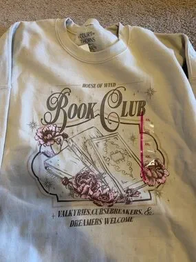 Soft cream crewneck sweatshirt with a vintage-inspired Book Club graphic. Features pink floral and neutral-toned artwork. Comfortable relaxed fit and durable construction. Perfect for casual reading days and everyday wear.