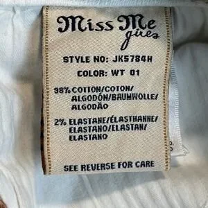 Miss Me Girls White Denim Cutoff Shorts Embroidered Rhinestone Size 16 26X3
