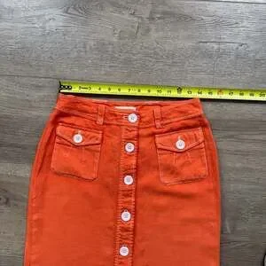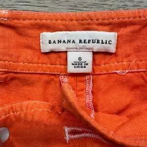 Banana Republic Orange Linen Cotton Button Front Mini Skirt Pockets Sz 6