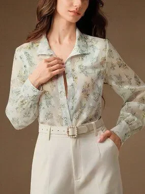 White Elegant Casual Women's Floral Print Long Sleeve Blouse