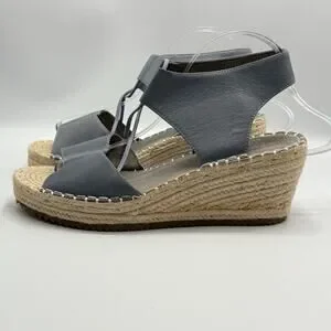 Eileen Fisher AGNES Blue Leather Espadrille Sandals WOMENS SIZE 9 Platform Wedge
