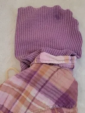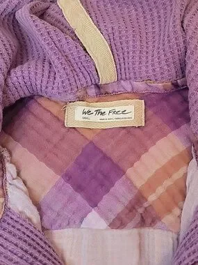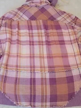 Free People We The Free Lavender Plaid Waffle Hooded Distressed Button-Up. Small