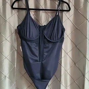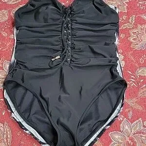 EUC. Mesh panel behind lace up front. Moderate coverage on. Hip and rear. Adjustable straps. Tag sizing info worn off- snapped pic from a sold Posh listing for fabric content. Compared this suit to another MagicSuit in my closet, a size 16, this suit was about an inch smaller throughout- listing as a 14.