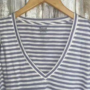 Madewell striped tank top in a soft gray and white colorway featuring a flattering V-neckline and relaxed fit. Made from breathable 100% cotton, this lightweight top is perfect for everyday wear.