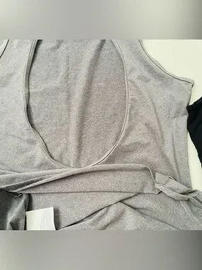 The bottom of the seam on the gray tank is coming undone. Easy sewing fix. See photo