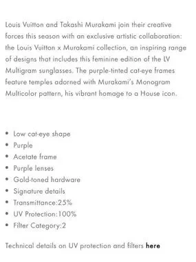 This is an absolutely gorgeous pair of Louis Vuitton Murakami sunglasses, with purple frames. Stunning multicolor pattern, and extremely sought after. These rare sunglasses are new with tags, cloth pouch, leather sunglasses box, LV box & shopping bag! It comes with everything!