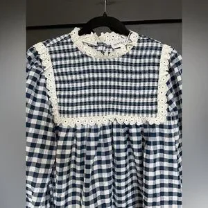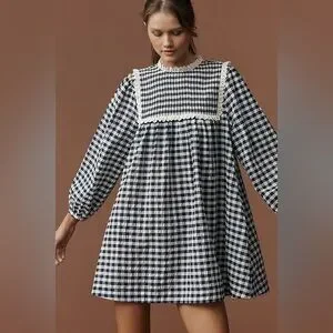 NWT Hunter Bell Carlyle Long-Sleeve Mini Dress in Navy/White Gingham, Size Small