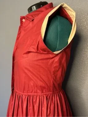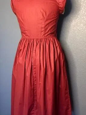 Sunshine Alley Vintage Retro Red Button Down Darling Dress Midi