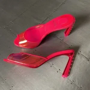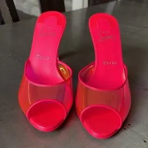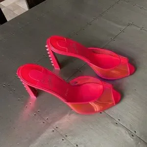 Christian Louboutin condorapik pink fluo neon mule stiletto peep toe sz 37