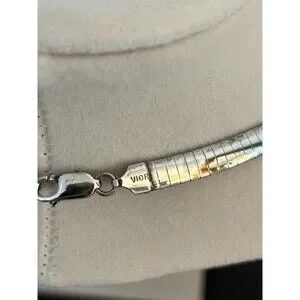 Vior Italy Sterling Silver 16in Omega Chain 6mm with Hammered Pendant.