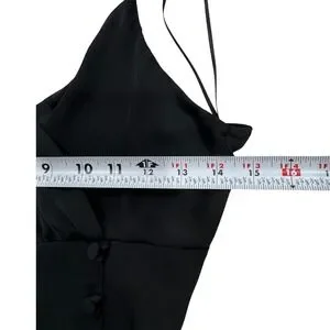ZARA Satin Slip Dress Black Midi Lingerie Style Side Slit Button Detail Size S