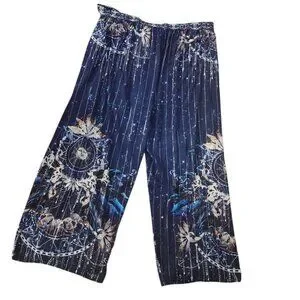 Johnny Was Supernova Wrap Pant Women's Size 2x Navy Blue Shimmer Front Tie