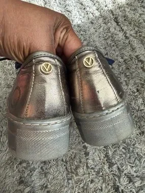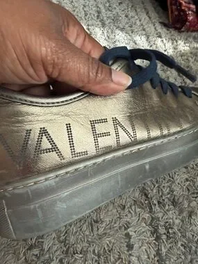 Valentino Metallic Bronze Leather Sneakers with Navy Laces sz 9