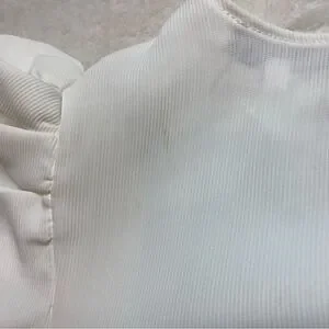 Endless Rose White Pleated Puff Sleeve Top New With Tags Size Small. Great new condition. 2 faint marks as shown in photos. Key hole back with one button closure. Measures chest 36", length 24.5", sleeve 11".