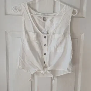 FOREVER 21 | NWT Western Sleeveless Button-Front Tie-Hem Tank S White