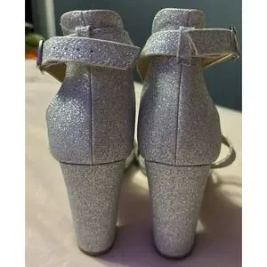 NEW Didifu Women's Silver Glitter Strappy Open Toe Chunky Heels, Size 9