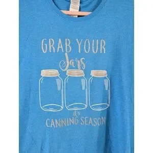 Gildan Size Large Womens Blue Canning Graphic Short Sleeve Casual Top