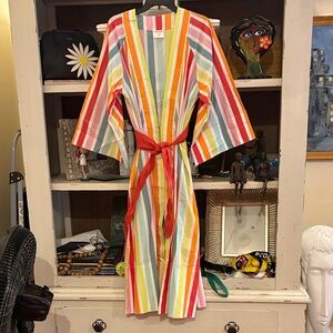 Lake Pajamas x Atlantic Pacific Bell Robe in Rainbow Stripe SZ L NWOT