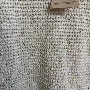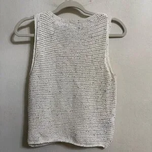 Open-knit sleeveless tank with a round neckline. Lightweight breathable crochet texture. Neutral cream tone for easy pairing. Versatile layering piece for casual looks.
