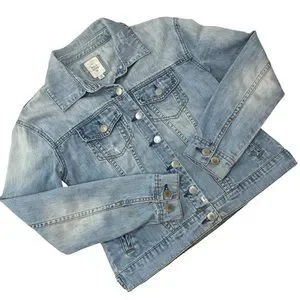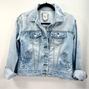 A vintage, oversized denim jacket with a well-worn wash adds to the retro look of this classic staple denim jacket.