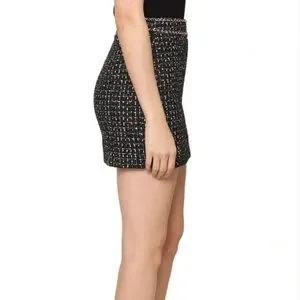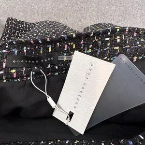 Endless Rose Tweed Skirt Black/ Multicolor Medium Gold Chain on Waistline Lined