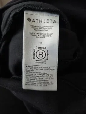 Athleta Eastbound straight pants in size 14, designed for comfort and versatility. These black travel-style pants feature a sleek pull-on waistband, stretch fabric, and a clean straight-leg silhouette, making them ideal for work, travel, or everyday wear.