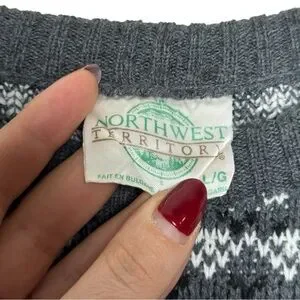Vintage 80s Speed Skating Fair Isle Sweater Size Large Grey Winter