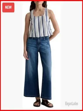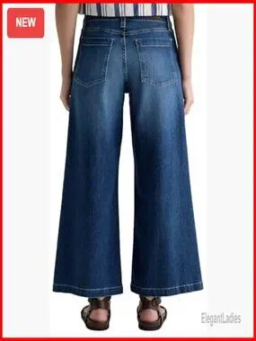Mid Rise Ankle Palazzo Jeans, Wide Leg with Trouser Details