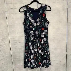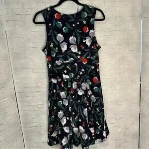Jessy B sleeveless dress, navy background, white and red flowers, size large