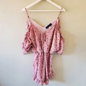 Blue Rain L Whimsigoth Bohemian Resortwear Ditsy Floral Coquette Dainty Romper