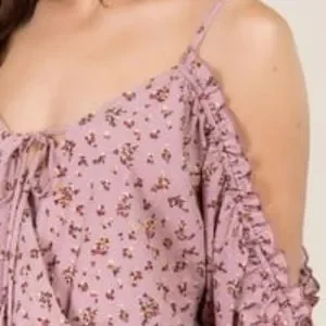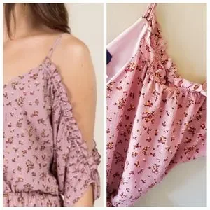 Cold Shoulder with inserted adjustable spaghetti straps and Ruffle short sleeve