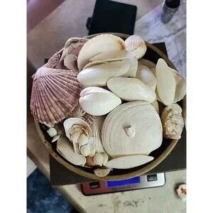 This product is a 2 lb bag of mixed crafting seashells, both whole and in pieces, contained within a primitive clay bowl. The seashells are versatile crafting supplies that can be used in various creative projects. Whether for decorating, jewelry making, or other crafts, these seashells offer unique and natural elements to add to your creations.