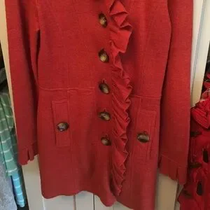 Anthropologie Red Ruffle Front Cardigan Sweater