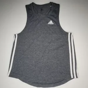 Gray sleeveless tank with side stripes (Women’s Small, fits girls 14)