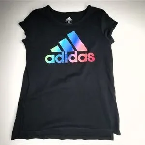 Adidas Girls Size 14 Lot 2 Top Black Logo Tee Gray Tank Small