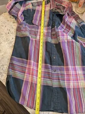 ✨ Style: Button-down, long sleeve, patchwork plaid