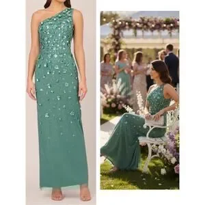 NWT ADRIANNA PAPELL DRESS GOWN GREEN SEQUIN MOTHER OF THE BRIDE FORMAL EVENING