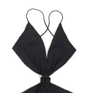 Black loop knot swimsuit from Dion Lee featuring a knot detail, a plunging neck, spaghetti straps and back criss cross straps.