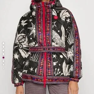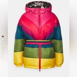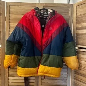 FARM Rio Cerrado Sky Reversible Puffer Jacket Black & White Rainbow M