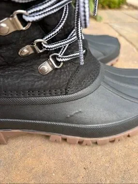 J. Crew Black Duck Boots with Red & Blue Plaid Cuff