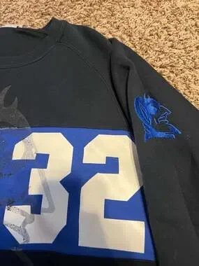 Nike Sportswear Duke Blue Devils #32 sweatshirt in medium. This is a vintage-style crewneck with the classic side-zip detail. Navy blue colorway with Duke branding and player number on the chest.
